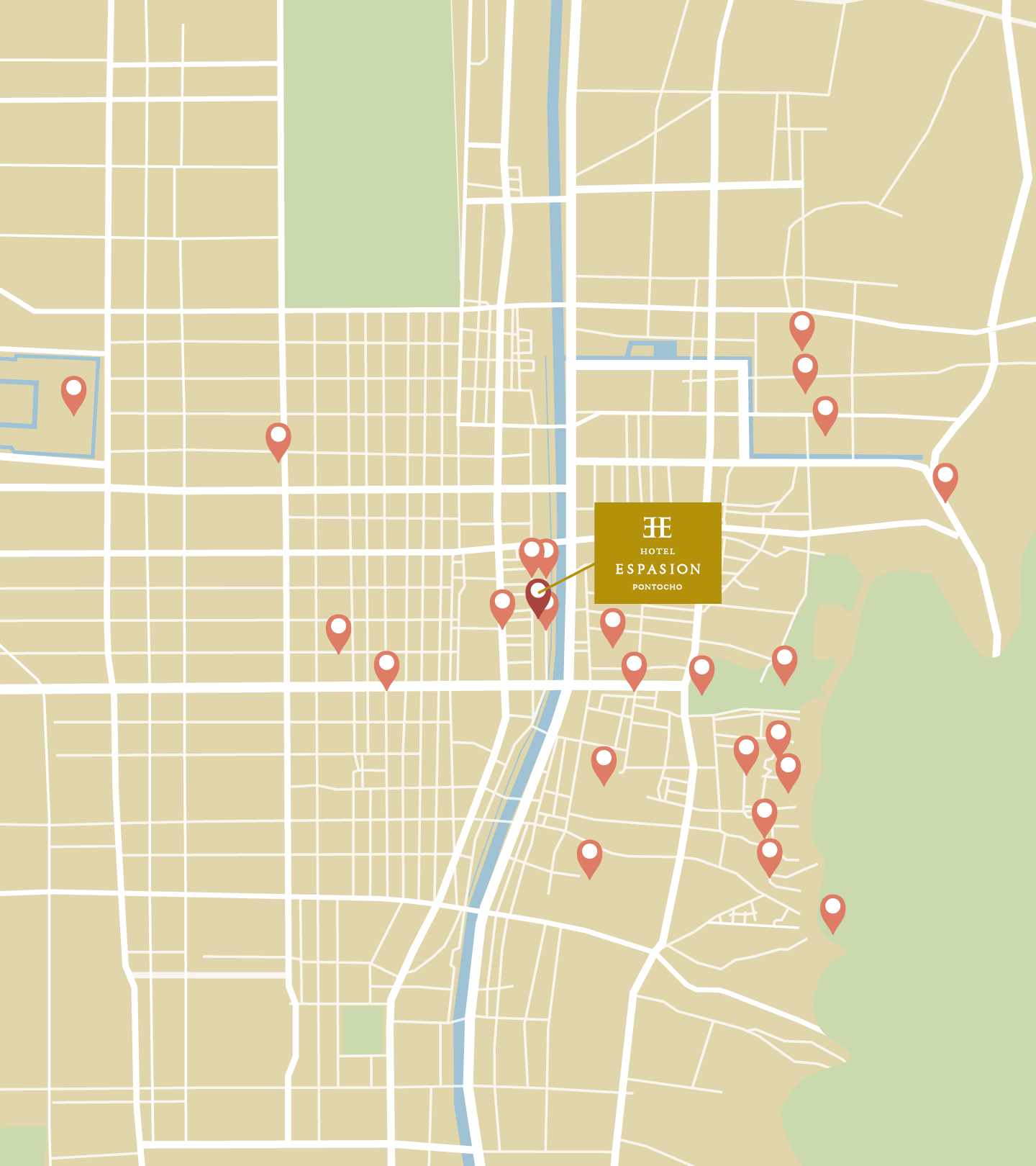 5-minute walk from Kyoto Kawaramachi Station (Kiyamachi North Exit)