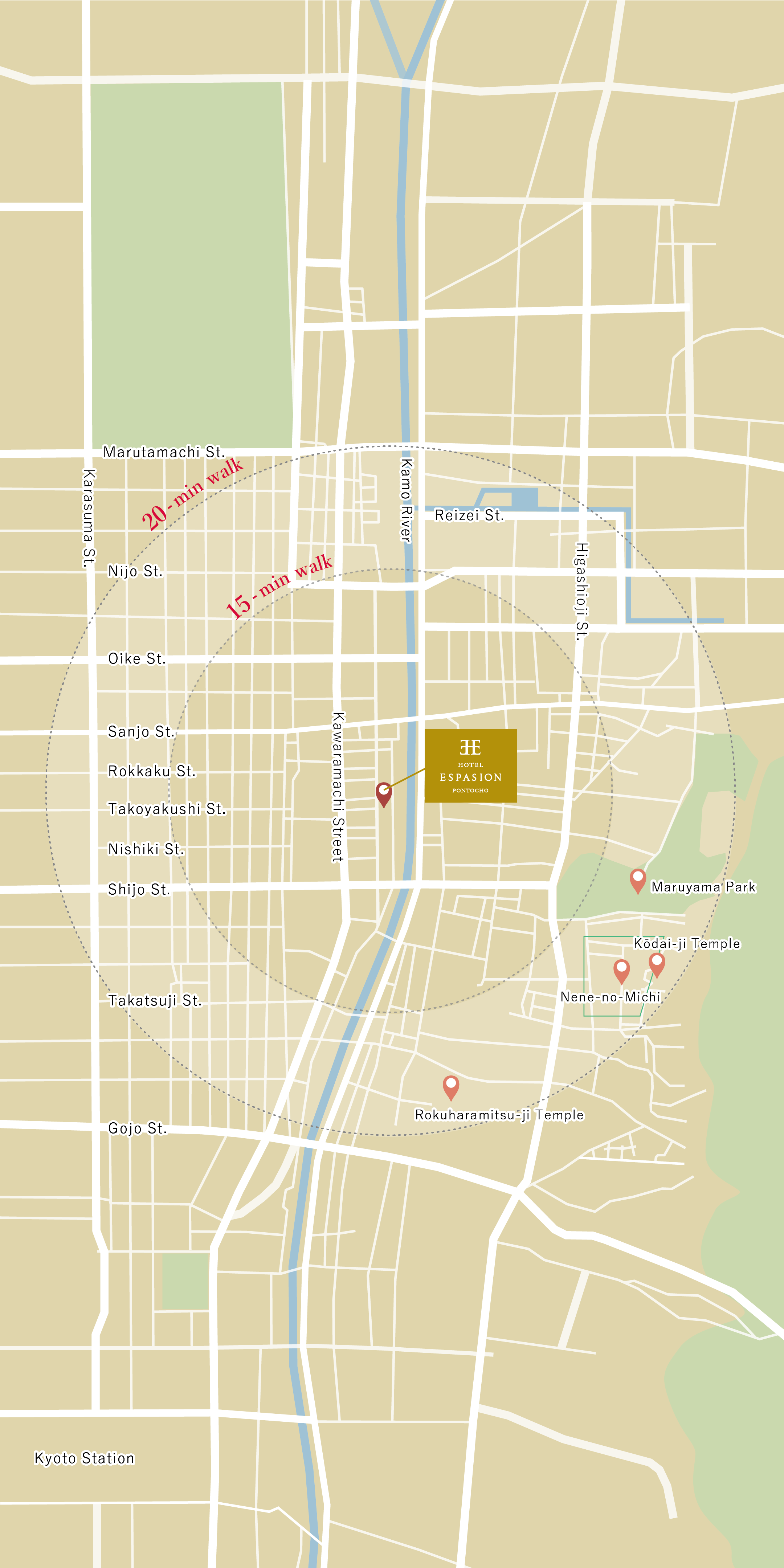 through all five senses. Connecting Kiyomizu-dera to Ninenzaka and eventually to landmarks like Hōkan-ji