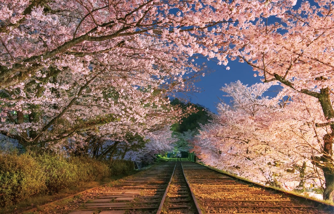 blossoms along the tracks create a breathtaking tunnel of flowers, making it a popular spot for photography