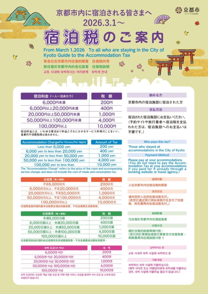 京都市内に宿泊される皆さまへ 2026年3月1日~ 宿泊税のご案内
